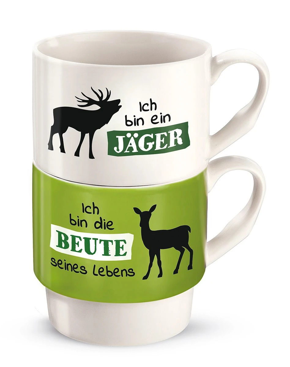 2tlg. Set Stapeltasse „Jagd“ weiß/grün
